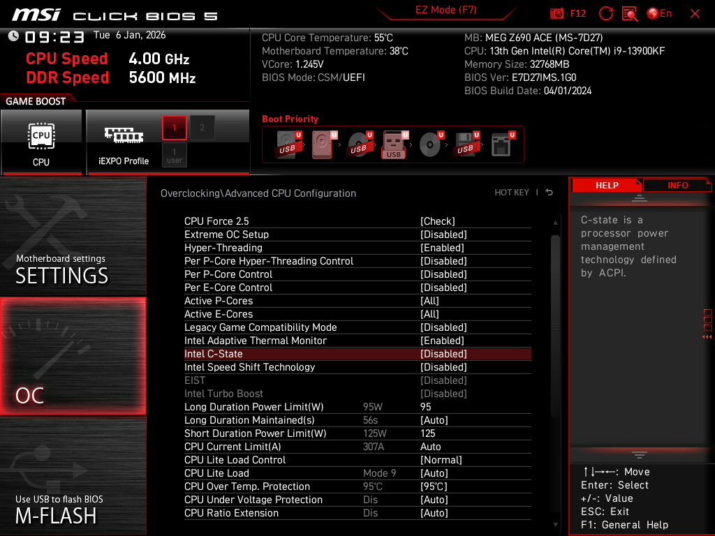 Deshalb ist es besser, den Ruhezustand zu unterbinden. Du kannst die „Intel C-State“ auf „Disabled“ stellen.